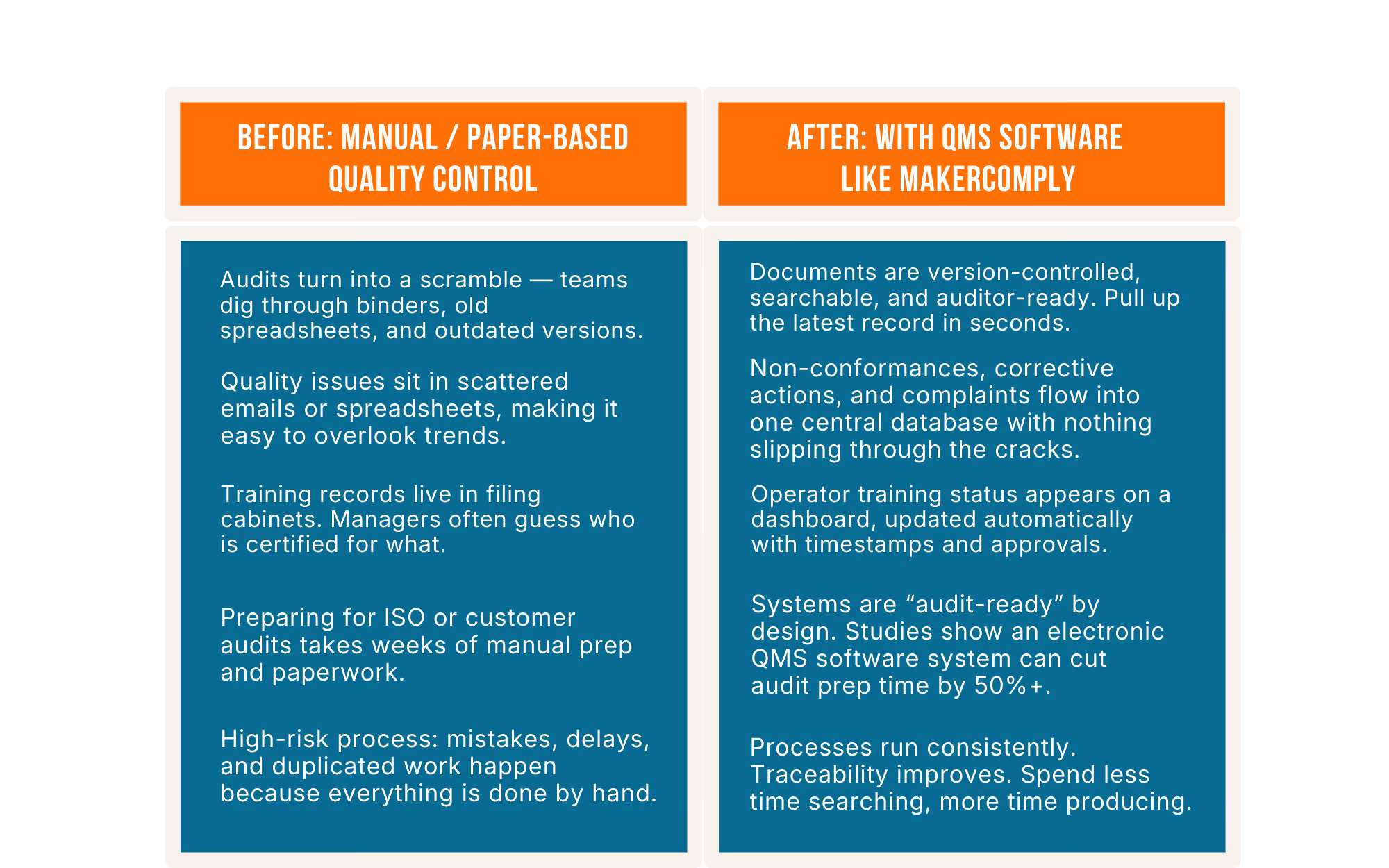 A modern QMS shifts you from scramble mode to continuous audit-readiness.